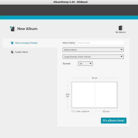 AlbumStomp ist eines der wenigen Tools, in denen sich Größen und Formate frei einstellen lassen.
